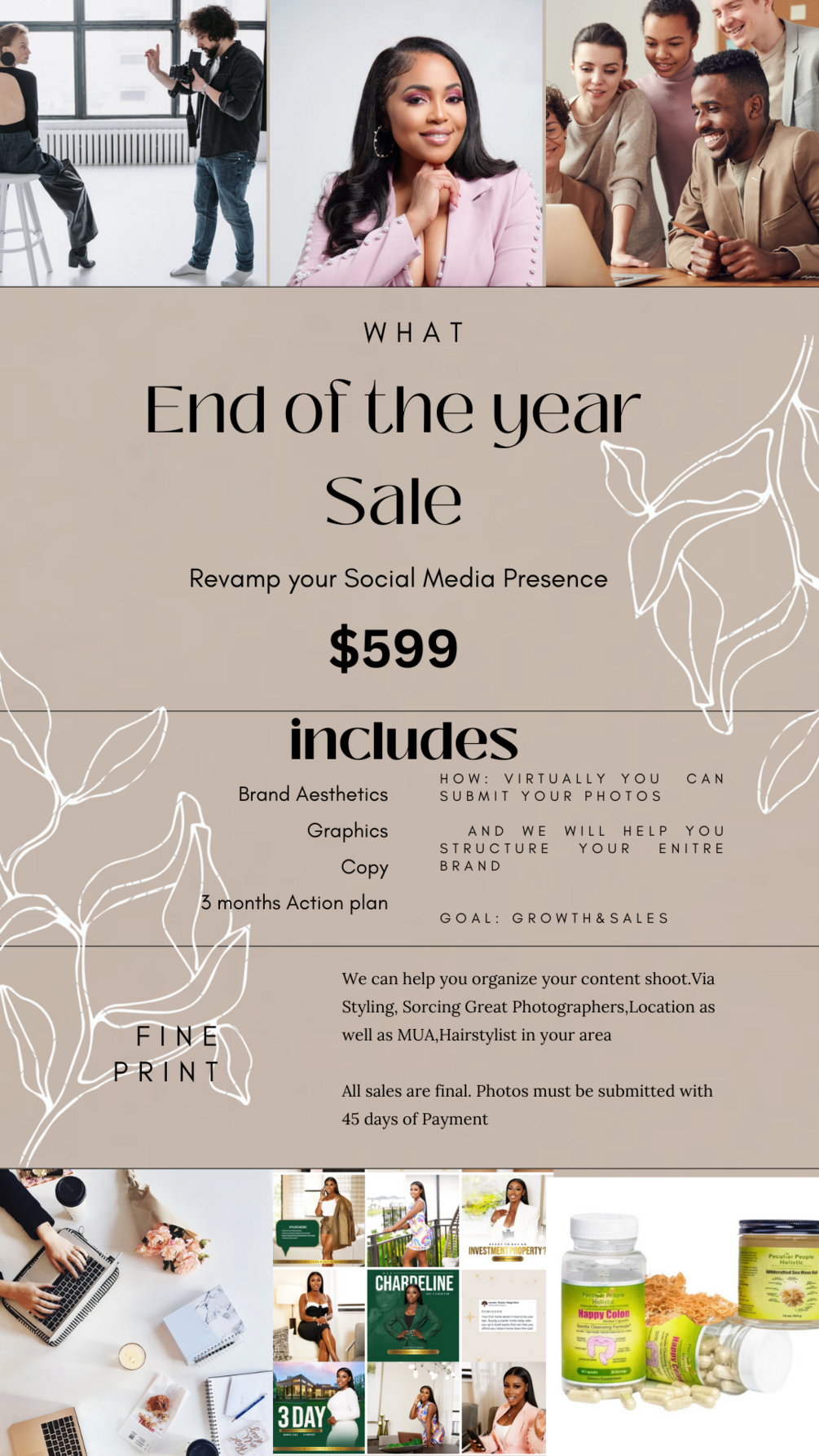 Here are a few reasons why you should take advantage of ESA marketing and branding agency's End- Of-The-Year Sale for * Cost Savings: Enjoy significant discounts on branding services, making it cost-effective for your company. Expertise: Benefit from the agency's years of experience and expertise in crafting successful brand identities. * Fresh Perspective: Re-branding can provide a fresh and modern perspective on your company's image. * Competitive Edge: Stay ahead of your competitors by presenting a new and appealing brand to your target audience. * Increased Visibility: A re-brand can attract more attention and increase your company's visibility in the market. * Improved Messaging: Refine your brand's messaging to better resonate with your target audience. * Enhanced Credibility: Re-branding can enhance your company's credibility and trustworthiness. * Adapt to Market Changes: Adjust your brand to align with evolving market trends and consumer preferences. * Boosted Customer Engagement: Engage customers with a brand that speaks to their needs and aspirations. * Long-Term Growth: Lay the foundation for long-term growth and success with a strong, revitalized brand identity. Taking advantage of this end-of-the-year sale can be a strategic move for companies / Individuals looking to revitalize their brand and achieve business goals.